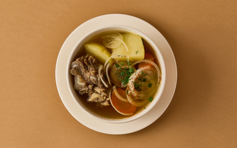 Насыщенный мясной бульон с мягкими кусочками мяса и зеленью. Идеален для любителей простых, но глубоких вкусов.