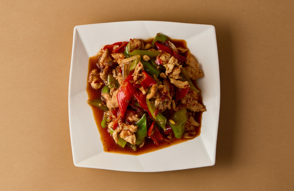 Кусочки сочного мяса в лёгкой хрустящей корочке, обжаренные с перцем и чесноком. Острый и яркий вкус для любителей пряных блюд.