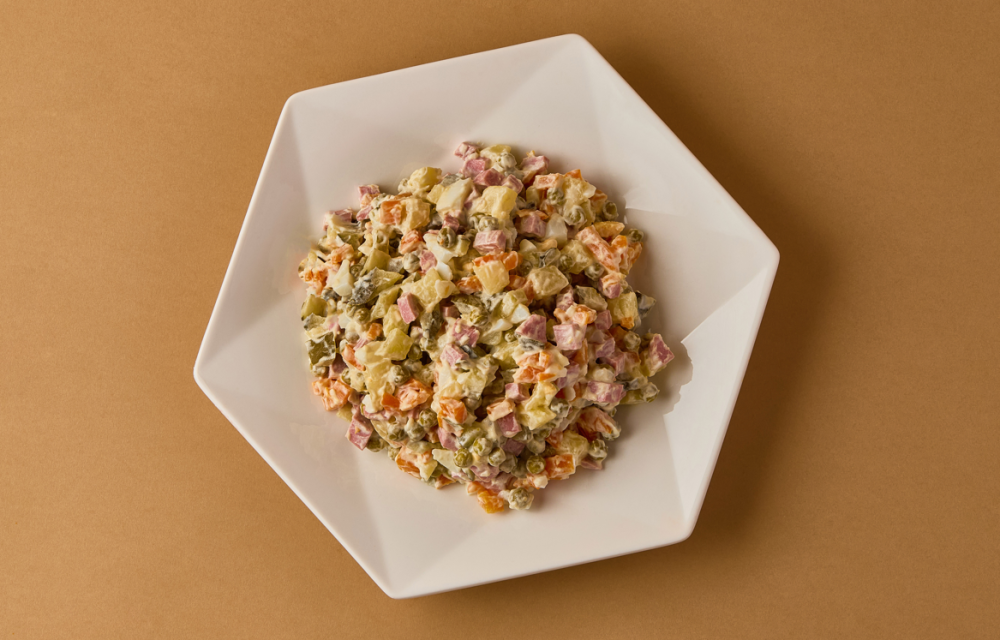 Любимый салат с мясом, картофелем, яйцом и майонезом. Домашний вкус и нежная текстура.