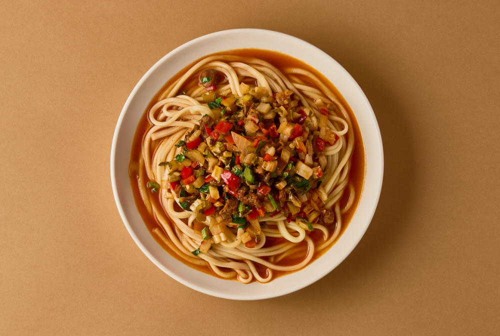 Нежное мясо и овощи в соусе, подаются с тянущейся лапшой. Сытное, пряное и невероятно ароматное блюдо.