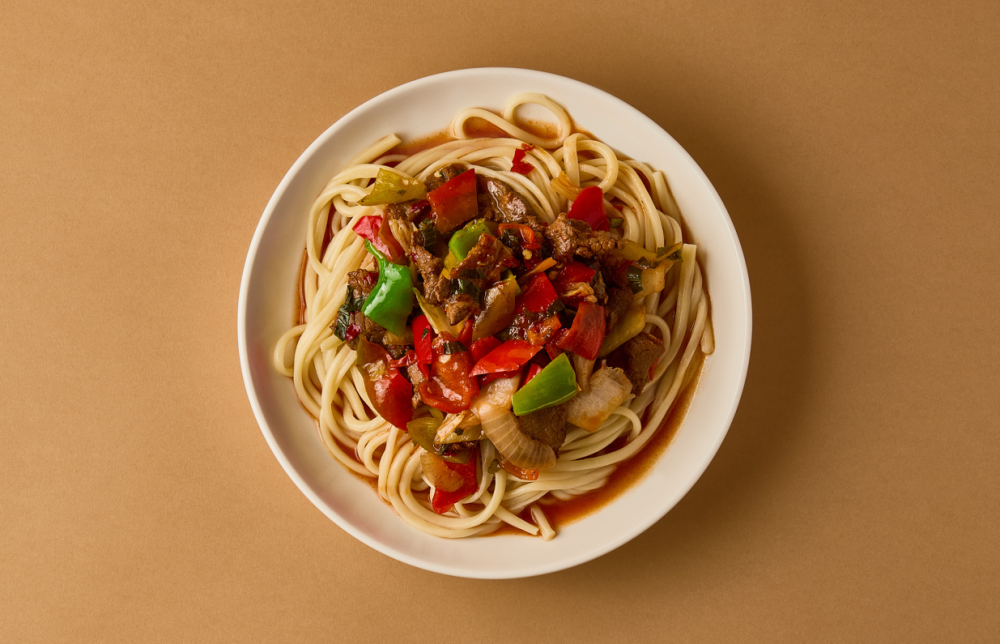 Мясо и овощи в пряном соусе с ароматной лапшой. В меру остро, с насыщенным вкусом и аппетитным ароматом.