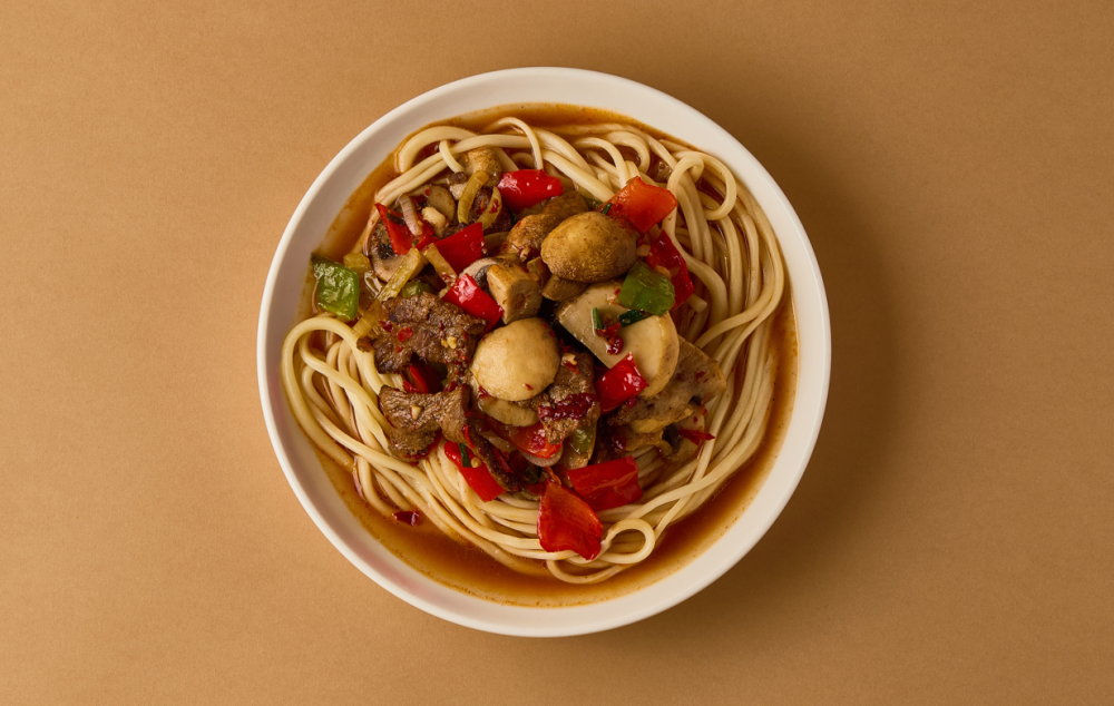 Сытное блюдо с говядиной и овощами в густом соусе. Лапша впитывает аромат и делает вкус особенно глубоким.